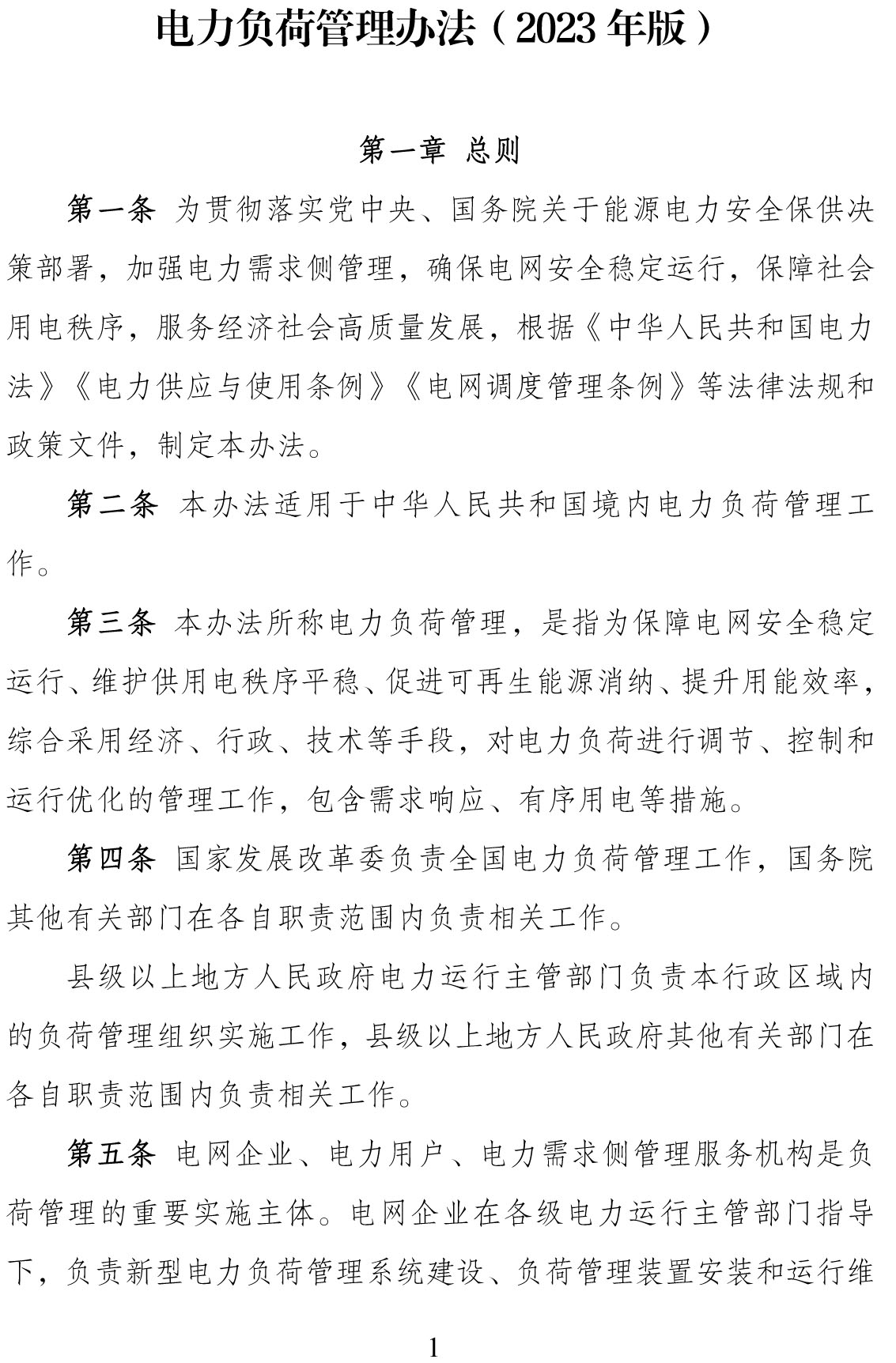 國家發(fā)展改革委國家能源局關(guān)于印發(fā)《電力負(fù)荷管理辦法(2023年版)》的通知